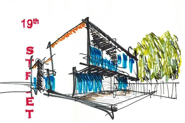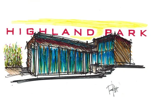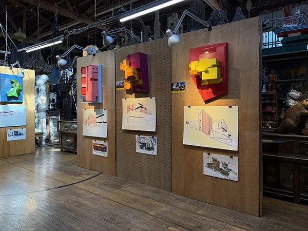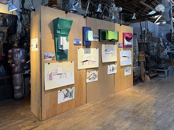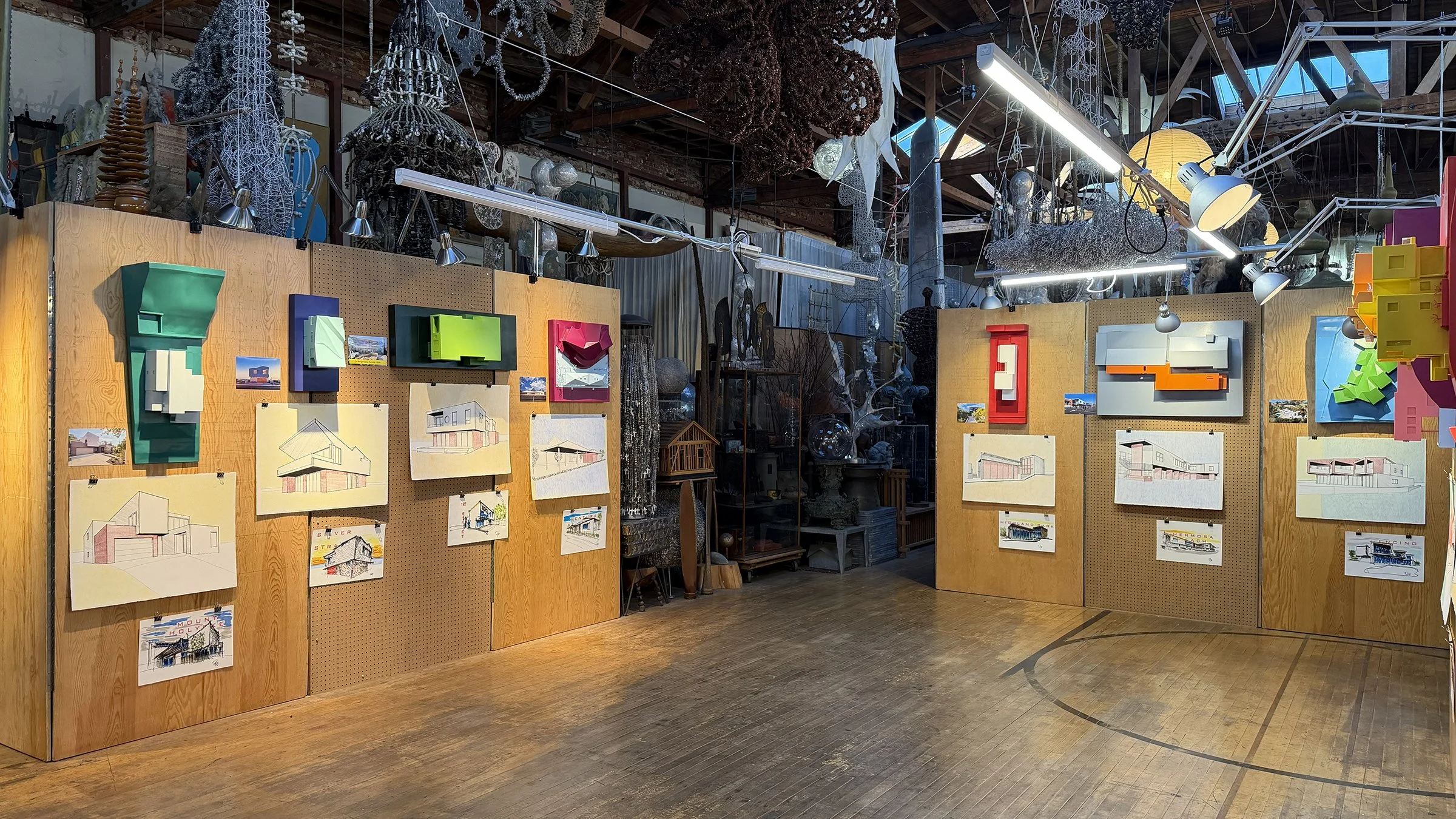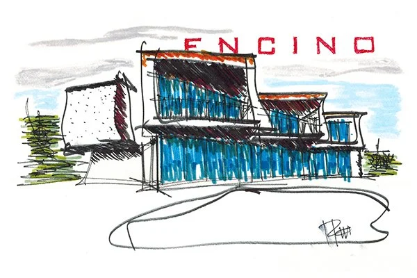 An exhibition of 10 realized projects from the office in northeast Los Angeles’ iconic Moryork Gallery. The exhibition included a sketch, drawing, photograph and architectural model of each project to illustrate the 20 years of completed buildings. Each sketch and drawing from the hand of Robert Kerr AIA. Even though the pieces are not specific to any design idea they help the viewer understand the process of ROBERT KERR architecture design.