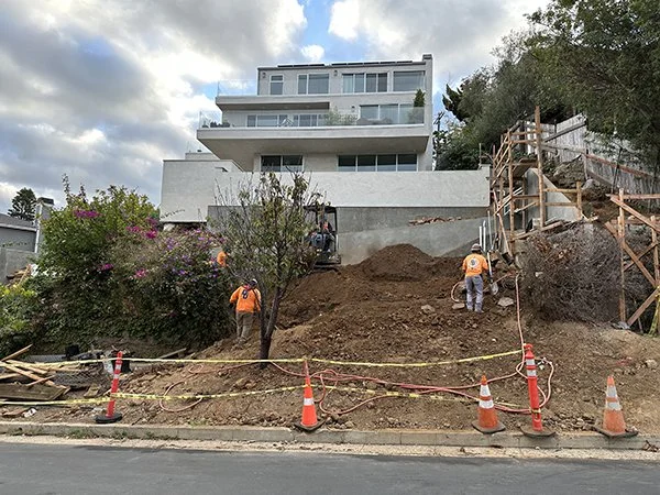 A single-family hillside residence located in the Pacific Palisades with expansive ocean views. A new poured-in-place concrete garage and hillside landscape included.