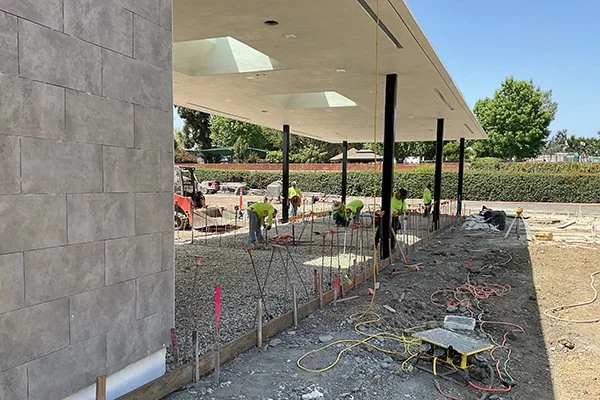 A new open-air pavilion and plaza shared by a church and private school in Ventura, California.